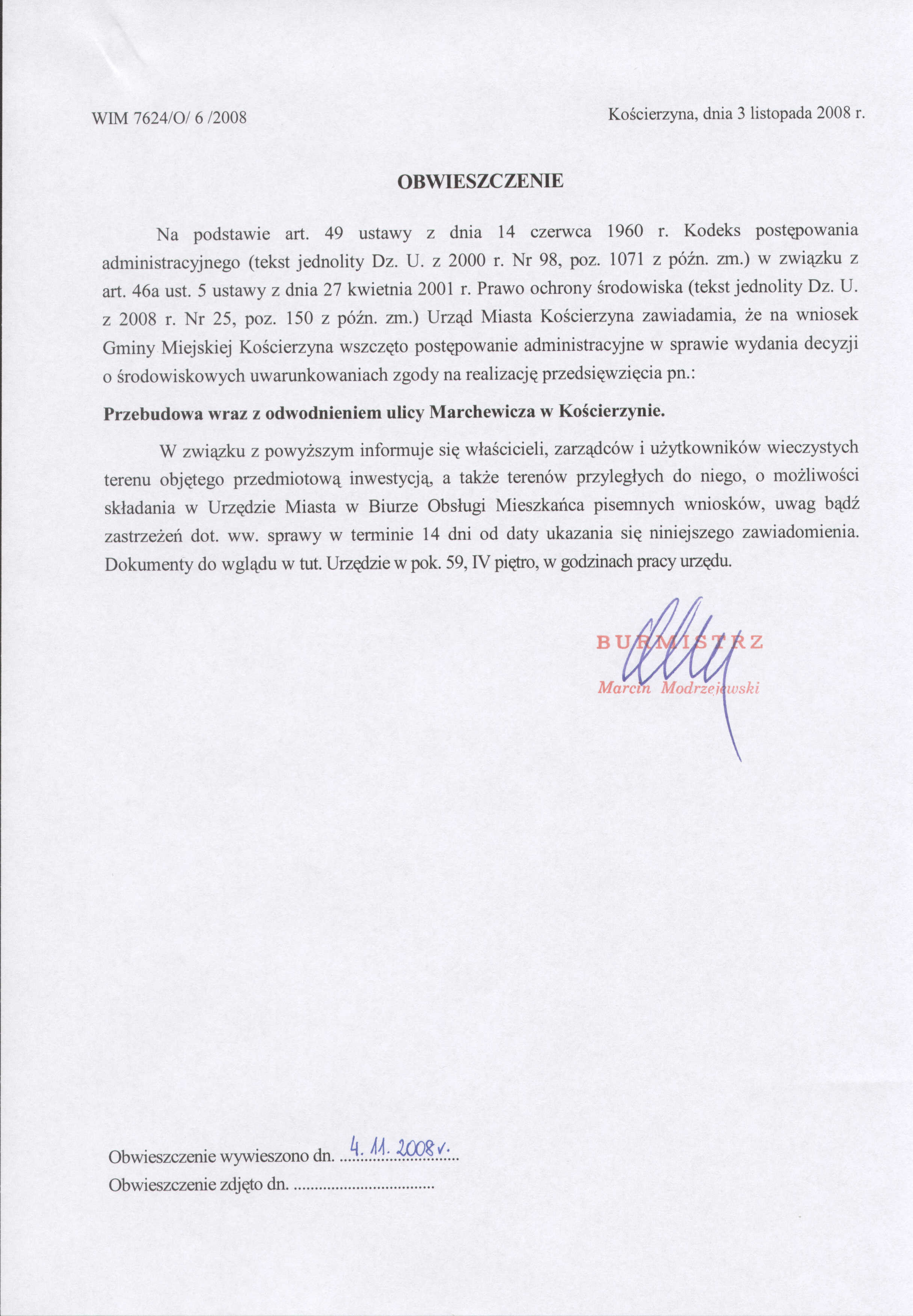 Obwieszczenie (zamieszczono: 11.08.2008)